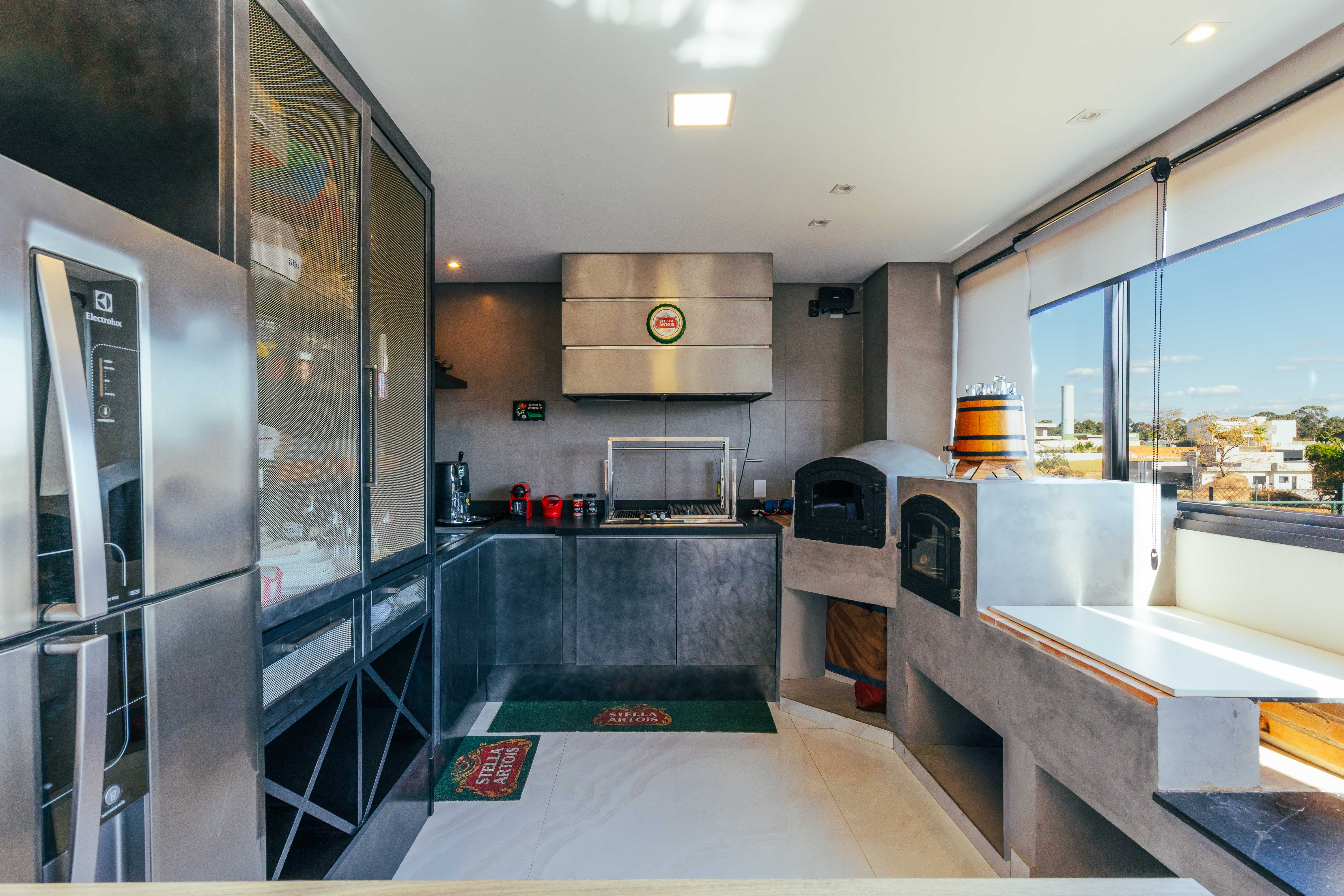 Espaço gourmet completo com churrasqueira e forno de pizza, ideal para receber convidados